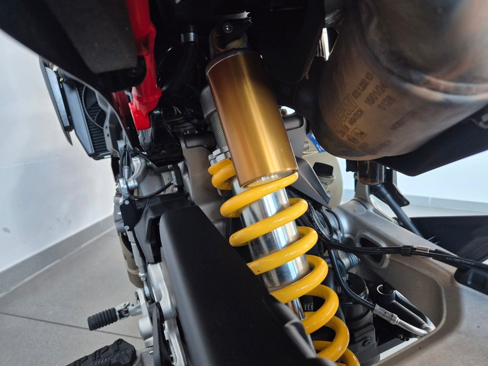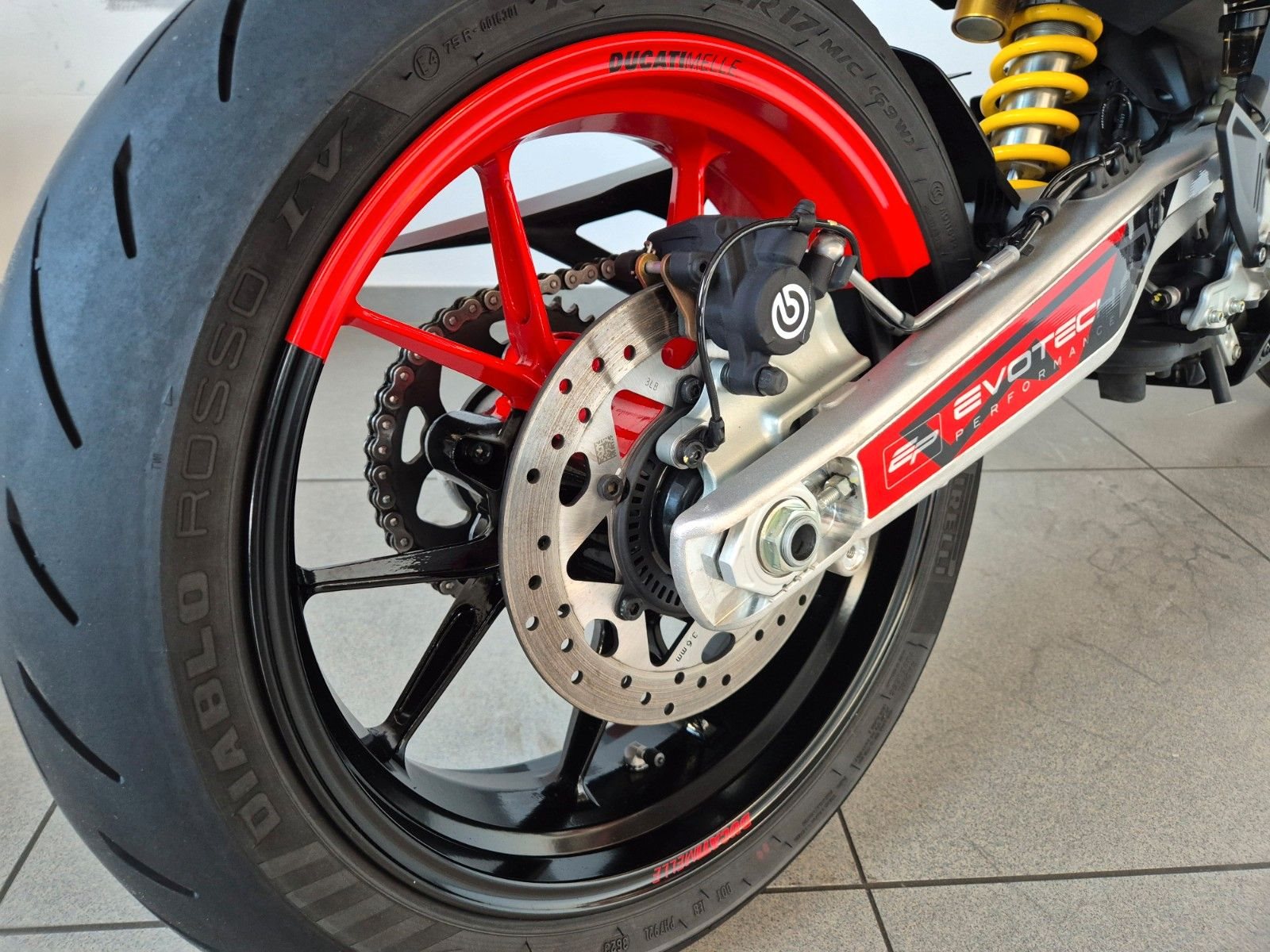 sehr gepflegte RVE aus 1.Hand, unfallfrei, mit Riding Modes, Power Modes, Bosch Kurven-ABS, Ducati Traction Control EVO (DTC), Ducati Wheelie Control EVO (DWC), Daytime Running Light (DRL), Ducati Brake Light (DBL), Ducati Quick Shift Up/Down (DQS) EVO, konifizierter Aluminium-Lenker, leichte Lithium-Ionen-Batterie, Handprotektoren, LED Scheinwerfer, LED Blinker vorn, LED Rücklicht, LED Blinker, Warnblinkfunktion, abnehmbare Soziusfußrasten, USB Steckdose, Kühlerschutzgitter, vielfach einstellbare Handhebel an Radialpumpen, Brembo Radial Monoblock Bremssättel vorne, voll einstellbare Marzocchi Upside-Down-Gabel, voll einstellbares Sachs Federbein, schöne Alu-Schwinge, Fahrerrasten mit abnehmbaren Rastengummi's, 12 Liter Tankvolumen, 904mm Sitzhöhe, 151kg trocken - 163kg fahrfertig getankt, Wartungsintervalle 15.000km oder 1x jährlich, Ventilspielkontrolle nur noch alle 30.000km, Schwingendekor von EvoTech, kurzer Kennzeichenträger von EvoTech, Motorschutzwanne von Performance