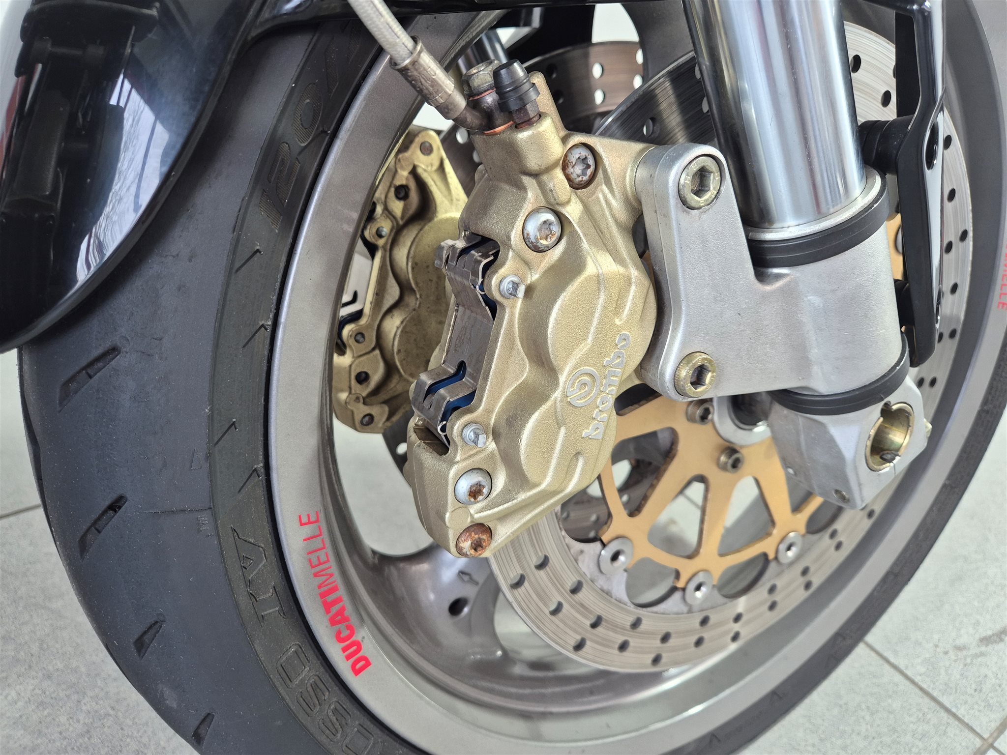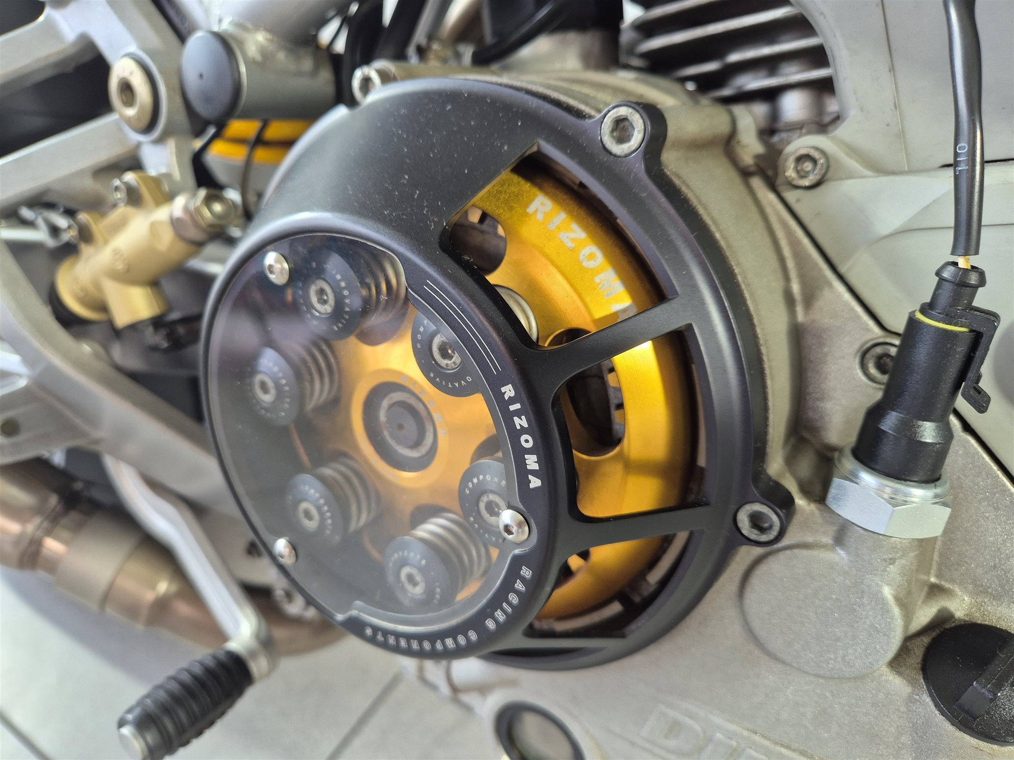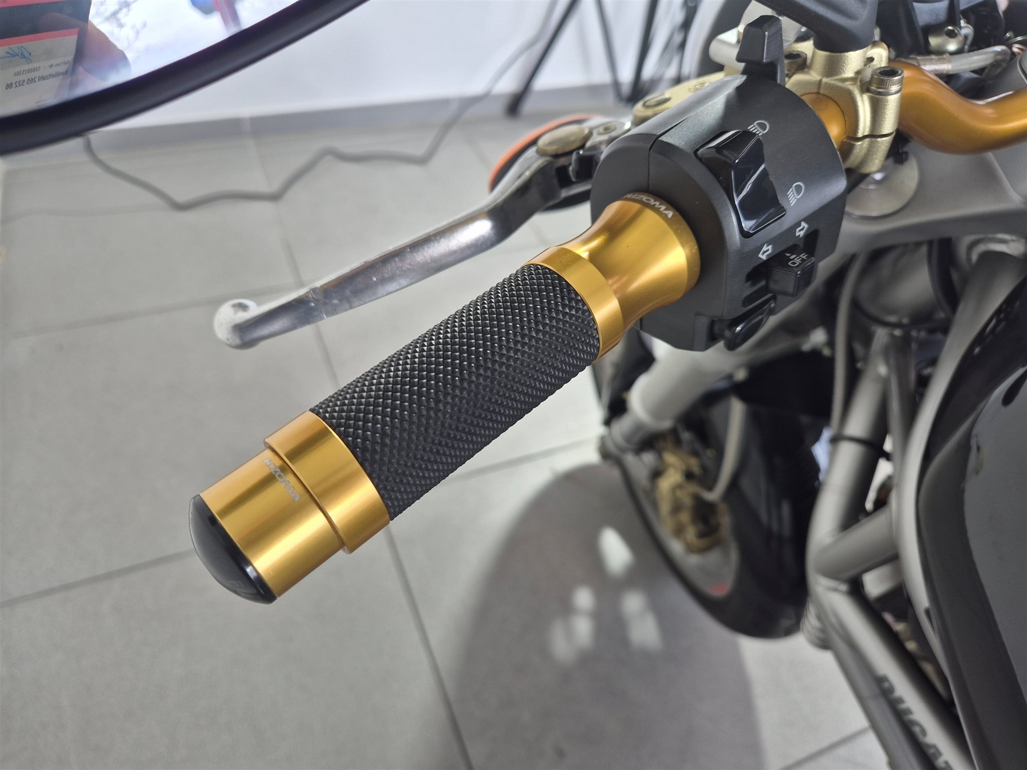 gepflegte 1000er aus 3.Hand bereits mit dem Kunststofftank, unfallfrei, große Inspektion mit Ventilen und neuen Zahnriemen durchgeführt, Tankpad, elektronische Wegfahrsperre, Showa Gabel vorn, einstellbares Showa Federbein hinten zusammen mit einer einstellbaren Schubstange zur individuellen Fahrwerkseinstellung, Hinterradabdeckung, Stahlflexleitungen rundum, gummierte Fußrasten für mehr Comfort, gute Übersetzung, neuer Hinterreifen, Brembo Bremsanlage, schwarzer Alu-Kupplungsdeckel von Rizoma, goldene Druckplatte von Rizoma, kurzer Heckumbau mit kleinen LED Blinkern von Kellermann, LED Rücklicht, vielfach einstellbare Handhebel, bequemer Superbike Lenker von Rizoma für mehr Comfort mit goldenen Alugriffen von Rizoma, goldene Rizoma Lenkergewichte, inklusive Code-Karte & Masterkey, 189kg trocken -> 205kg fahrfertig, nächster Desmo-Service erst wieder bei 46.000KM