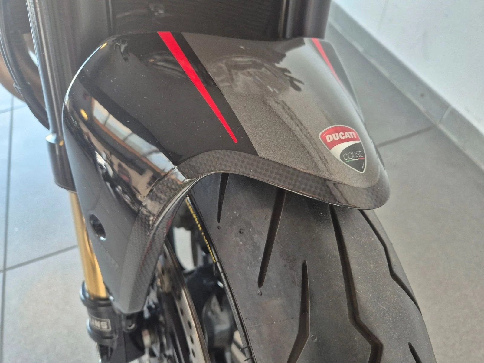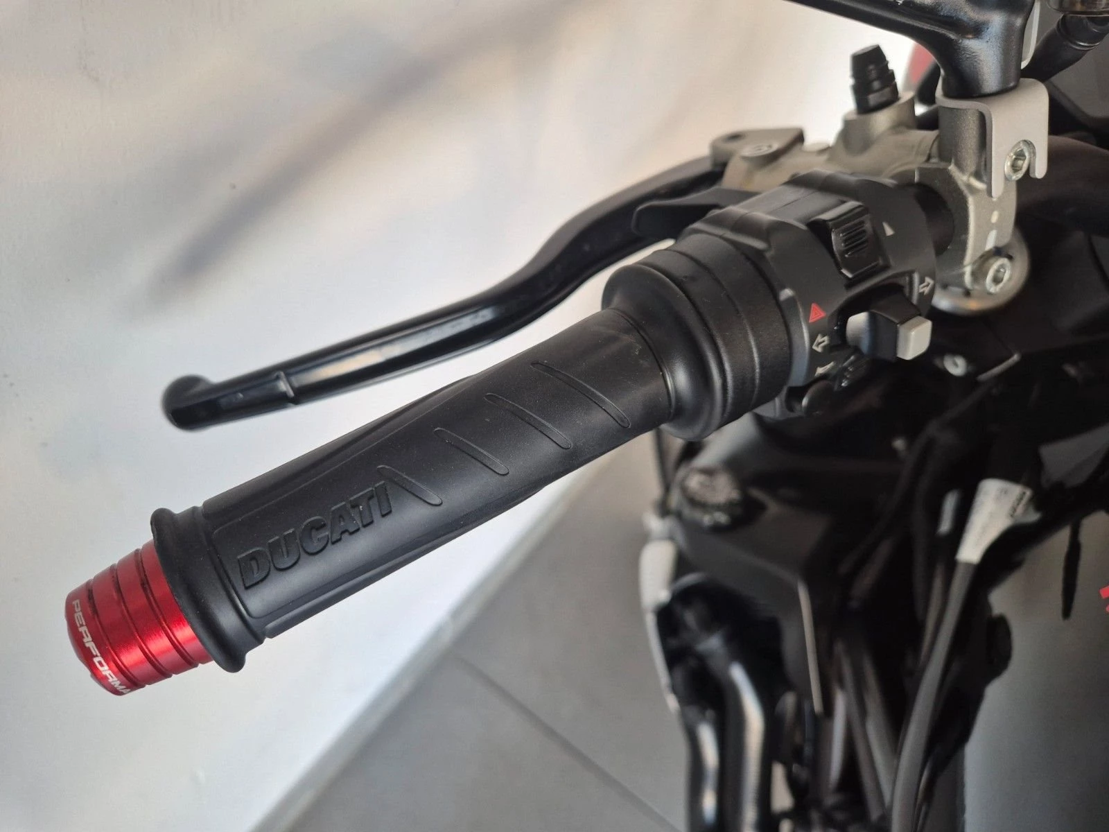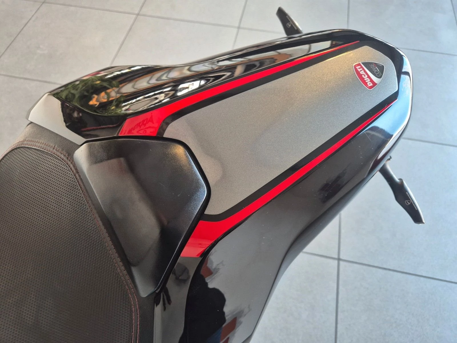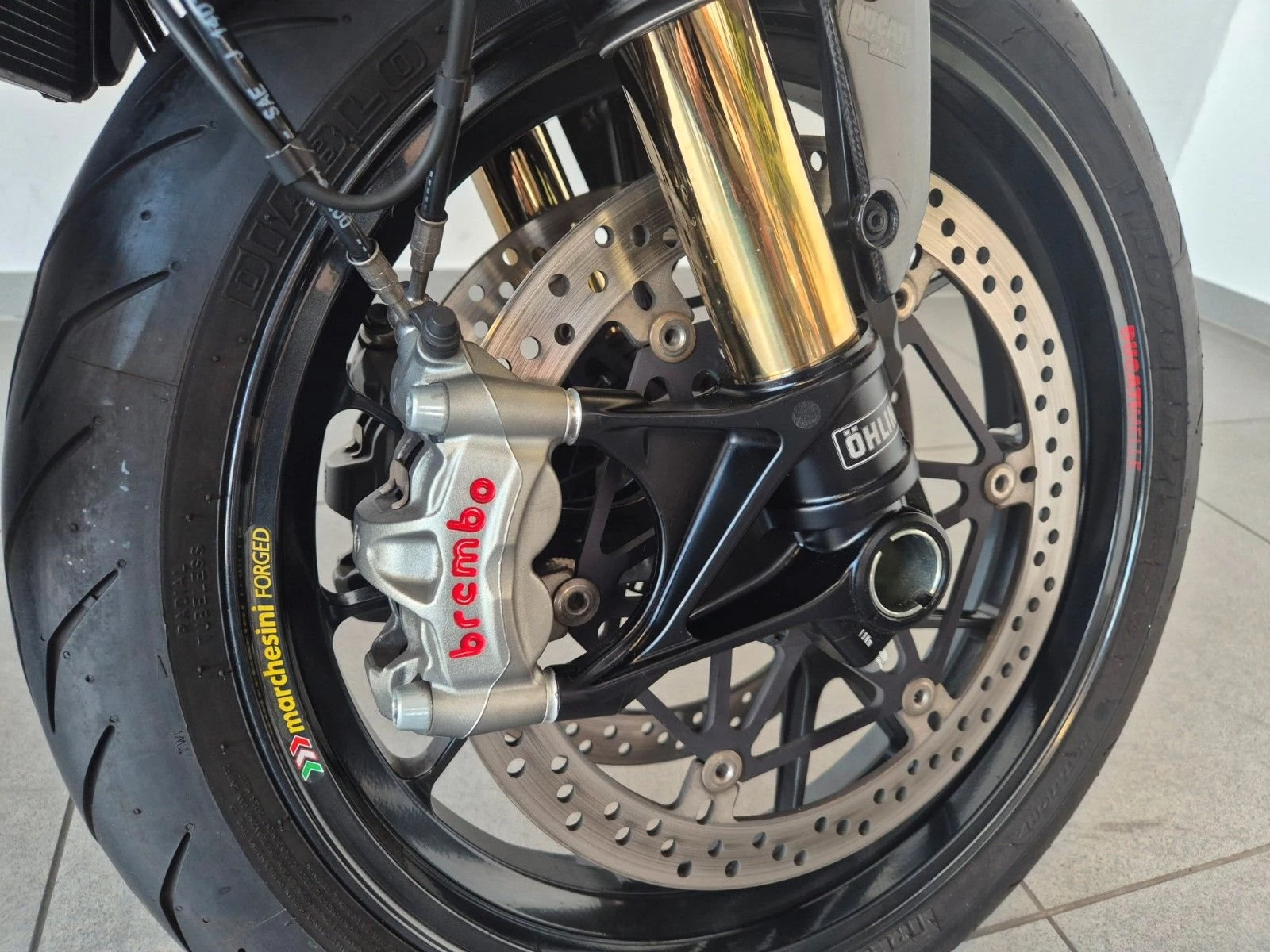 sehr gepflegte "R" aus 2.Hand, scheckheftgepflegt und unfallfrei, Inspektion mit Riemen gerade durchgeführt, gute Bereifung, Ducati Safety Pack (ABS und Traktionskontrolle(DTC)individuell einstellbar), 3 verschiedene Riding Modes, TFT-Farb-Display, Ride by Wire, LED Blinker vorne & hinten, LED Rücklicht, original Windschild, original Soziusabdeckung, Carbon Kotflügel vorn, Carbon Ölkühler Blende, vielfach einstellbare Handhebel an Radialpumpen, Brembo M50 Radial Bremssättel vorne mit 330iger Bremsscheiben, voll einstellbare schwarze 48mm Öhlins Upside-Down-Gabel, voll einstellbares Öhlins Mono-Federbein, einstellbarer Öhlins Lenkungsdämpfer, superleichte Marchesini Schmiedefelgen, Kupplung mit Anti-Hopping-Funktion, Mono Auspuffhalter von EvoTech, LED Rücklicht, Warnblinkerfunktion, kleine LED Blinker von Performance, kurzer Kennzeichenträger, Carbon Sportauspuff von SC-Project mit ABE, rote Alu-Lenkergewichte von Performance, Steckdose für Optimate zum Laden, 830mm Sitzhöhe, 131 NM Drehmoment, 17,5 Liter Tankvolumen, 180kg trocken, 207kg fahrfertig, Wartungsintervalle 15000 km oder jährlich, Ventilspielkontrolle(Desmo-Service) nur noch alle 30.000 km