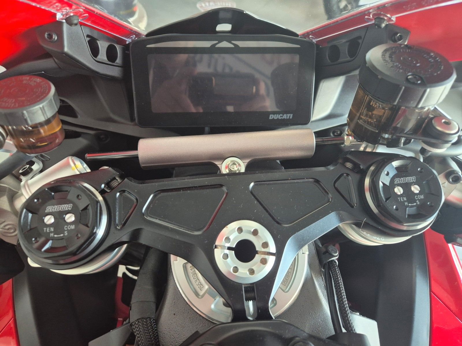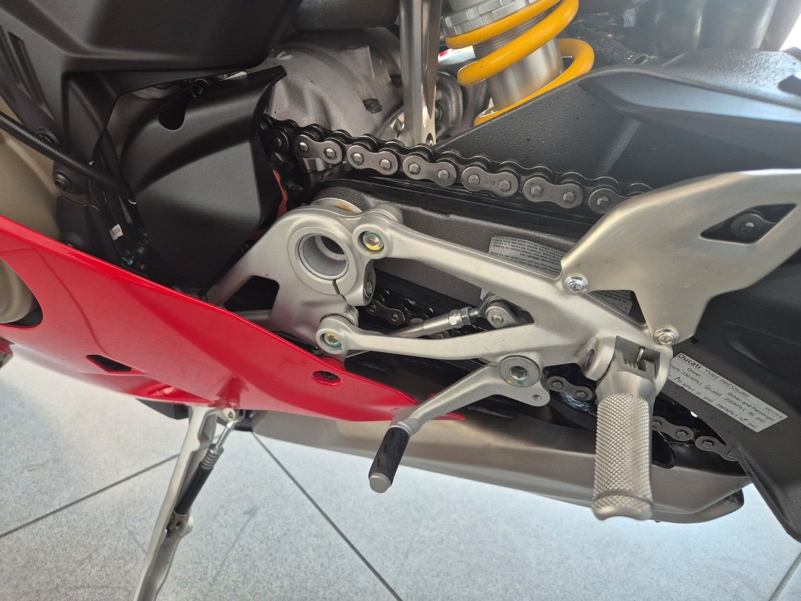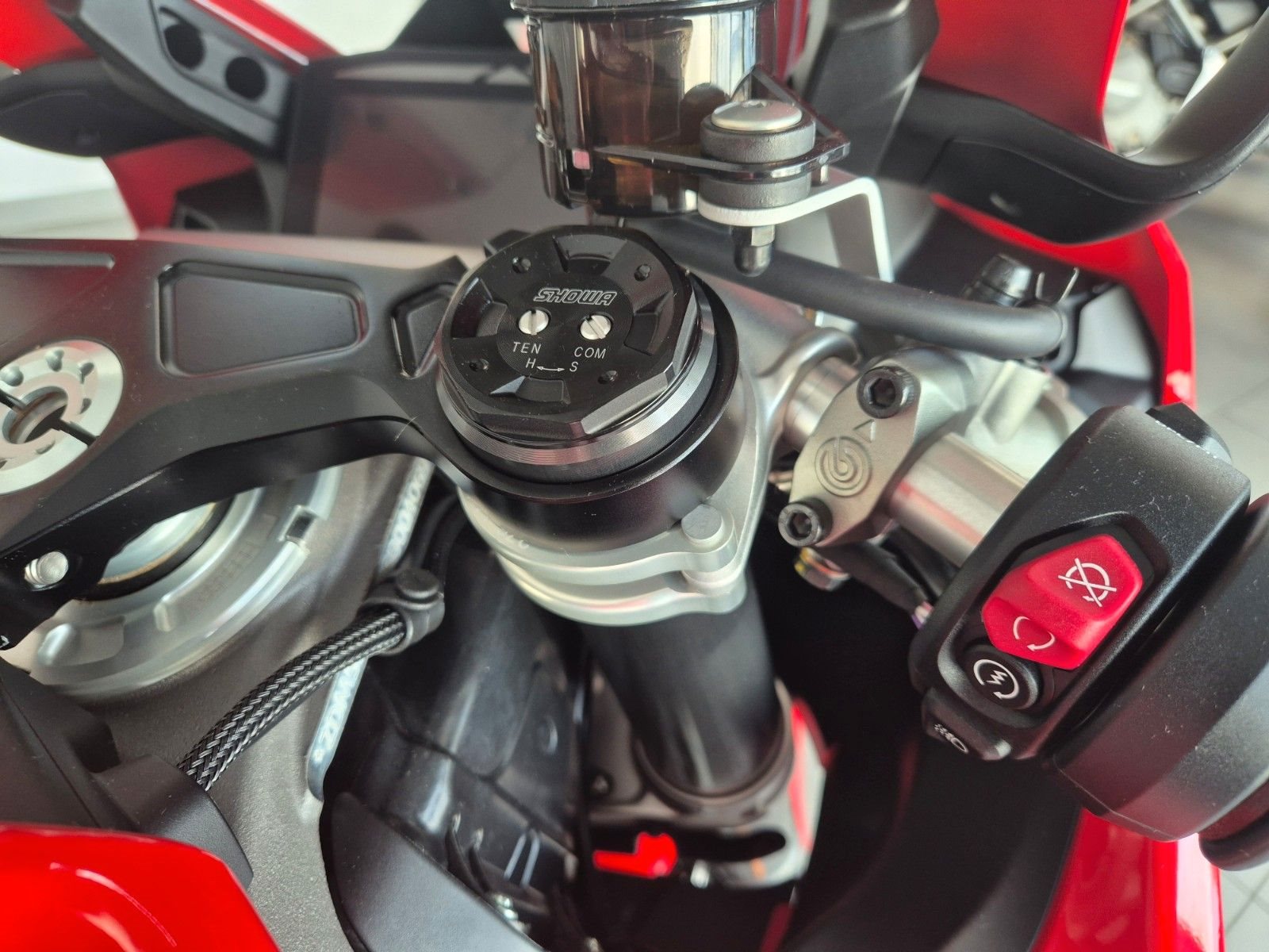 sehr gepflegte V4 aus 1.Hand, unfallfrei, scheckheftgepflegt, neues 6,9-Zoll-TFT-Display, 5 Riding Modes(Wet,Road,Sport,Race), Power Modes, Bosch Race eCBS, Traktionskontrolle(DTC), Ducati Vehicle Observer(DVO), Wheelie Kontrolle(DWC), Slide Kontrolle(DSC), Quickshifter up/down (DQS 2.0), Ducati Power Launch (DPL), Engine Brake Control (EBC), gute Bereifung, individuell einstellbare Showa Gabel, voll einstellbares Sachs Federbein, Öhlins-Lenkungsdämpfer mit Event-basierter Steuerung durch das Öhlins Smart EC 3.0, Stahlflexleitungen rundum, einstellbare Handhebel an Radialpumpen, Hinterradabdeckung, leichte Marchesini Schmiedefelgen für ein perfektes Handling, Brembo Radial Monoblock Stylema Bremsanlage vorn, LED Rücklicht, LED Blinker vorne & hinten, LED Scheinwerfer, leichte Lithium-Ionen-Batterie, Carbon Tank Pad, Monoposto Heck, 191kg fahrfertig, 16 Liter Tankvolumen, 120NM Drehmoment, 845mm Sitzhöhe, Desmo Service nur noch alle 24.000km,