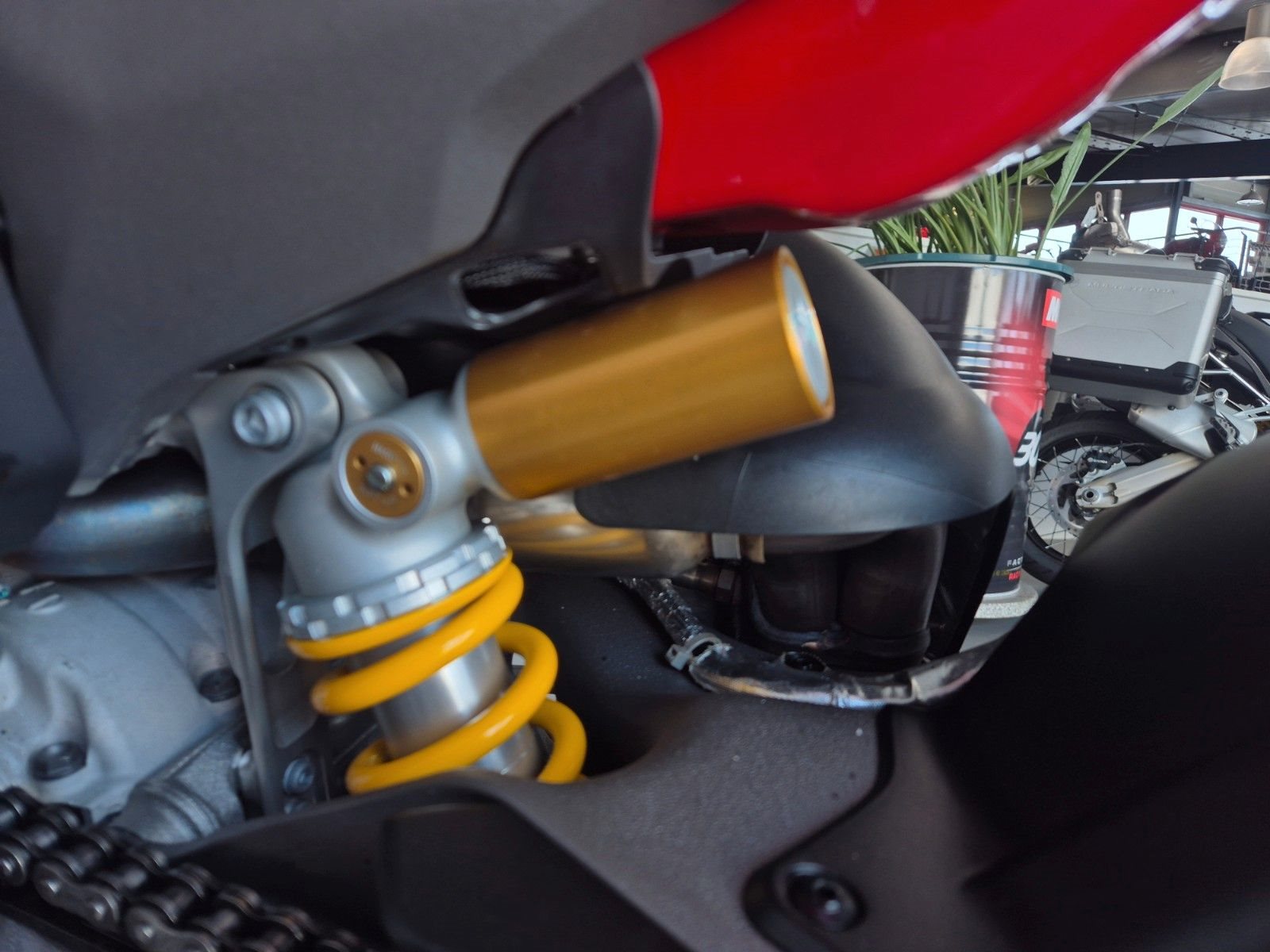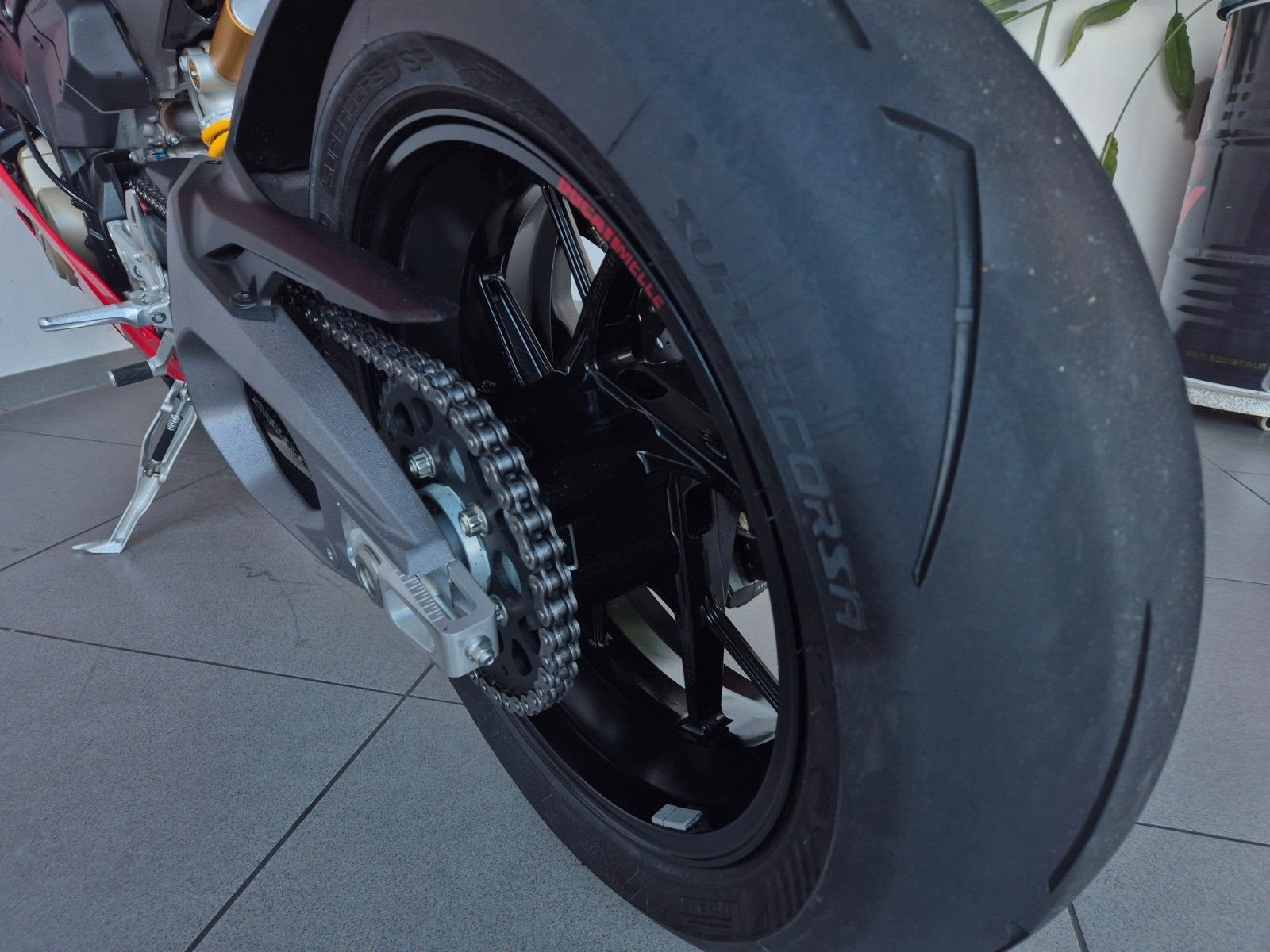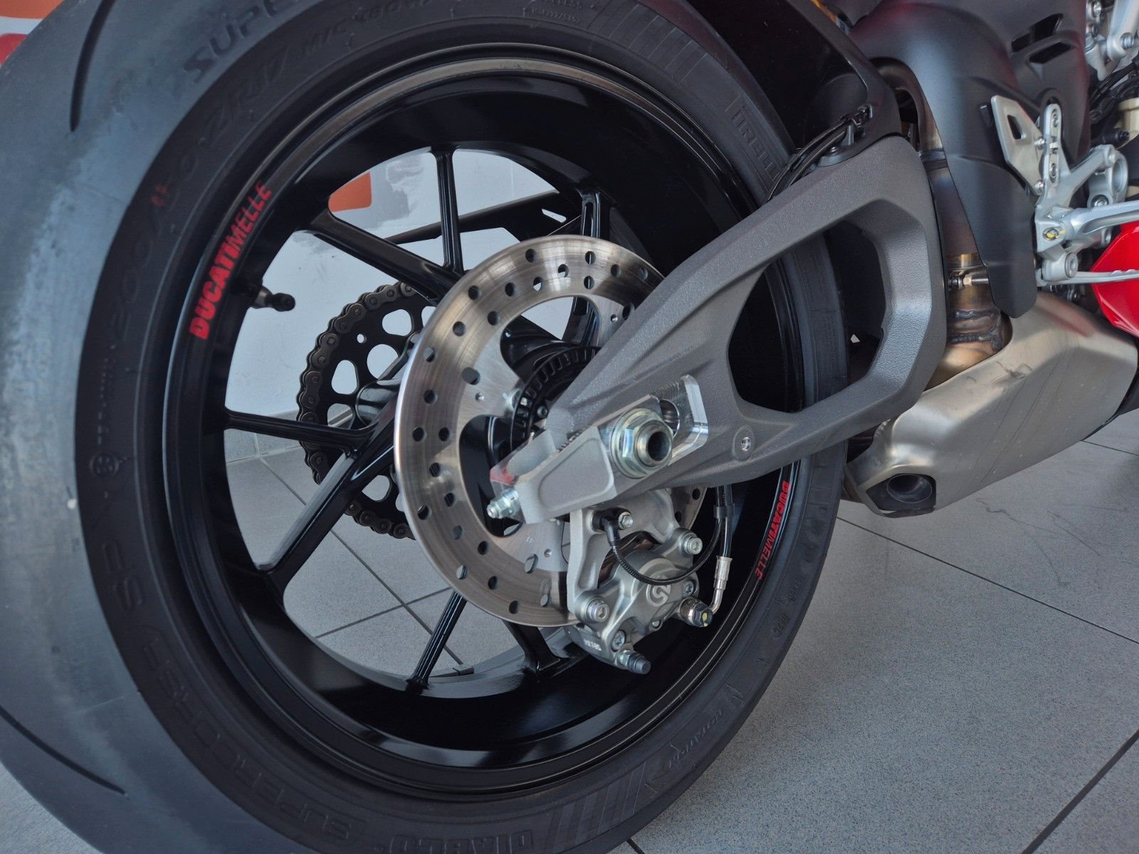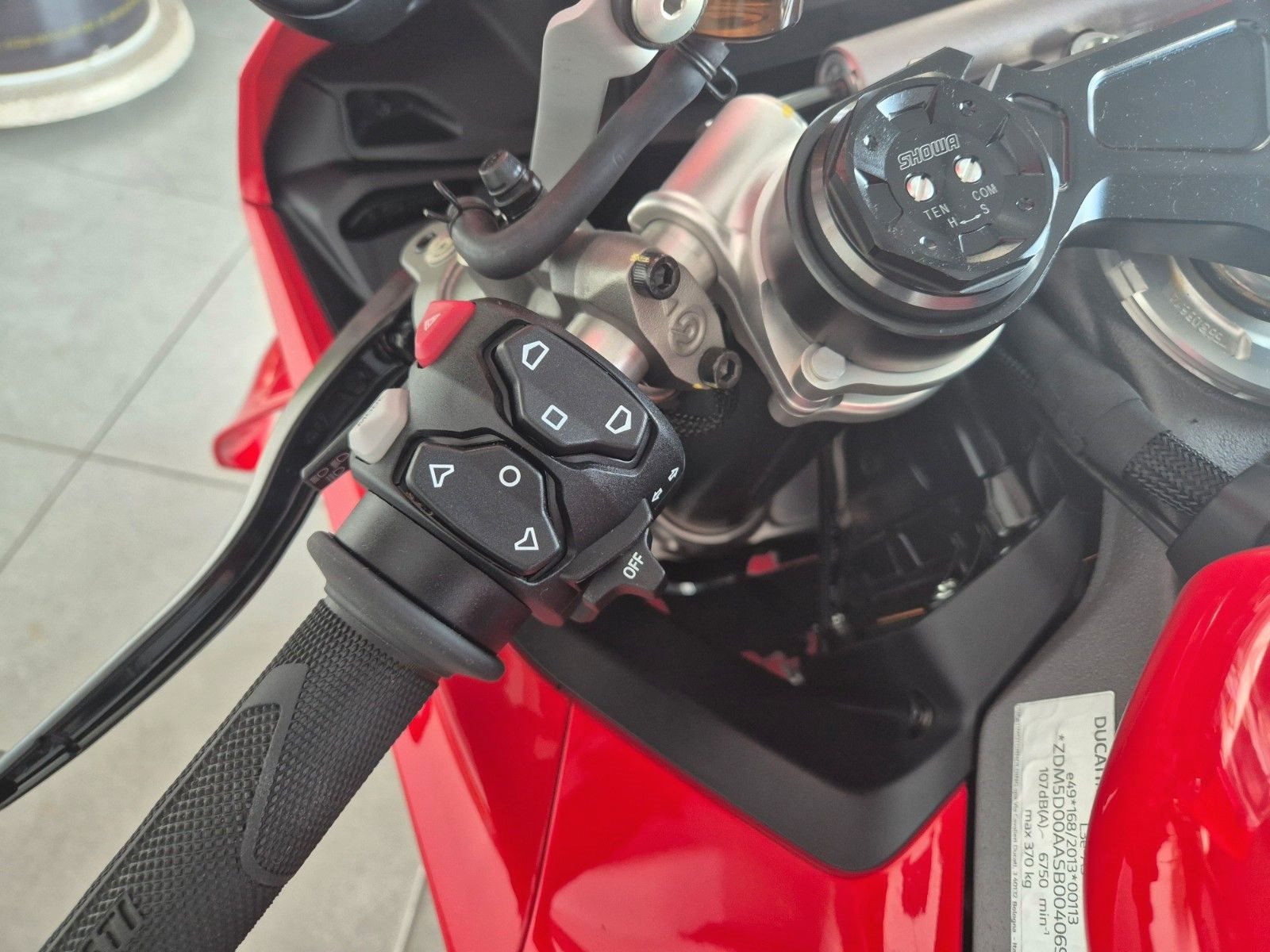 sehr gepflegte V4 aus 1.Hand, unfallfrei, scheckheftgepflegt, neues 6,9-Zoll-TFT-Display, 5 Riding Modes(Wet,Road,Sport,Race), Power Modes, Bosch Race eCBS, Traktionskontrolle(DTC), Ducati Vehicle Observer(DVO), Wheelie Kontrolle(DWC), Slide Kontrolle(DSC), Quickshifter up/down (DQS 2.0), Ducati Power Launch (DPL), Engine Brake Control (EBC), gute Bereifung, individuell einstellbare Showa Gabel, voll einstellbares Sachs Federbein, Öhlins-Lenkungsdämpfer mit Event-basierter Steuerung durch das Öhlins Smart EC 3.0, Stahlflexleitungen rundum, einstellbare Handhebel an Radialpumpen, Hinterradabdeckung, leichte Marchesini Schmiedefelgen für ein perfektes Handling, Brembo Radial Monoblock Stylema Bremsanlage vorn, LED Rücklicht, LED Blinker vorne & hinten, LED Scheinwerfer, leichte Lithium-Ionen-Batterie, Carbon Tank Pad, Monoposto Heck, 191kg fahrfertig, 16 Liter Tankvolumen, 120NM Drehmoment, 845mm Sitzhöhe, Desmo Service nur noch alle 24.000km,